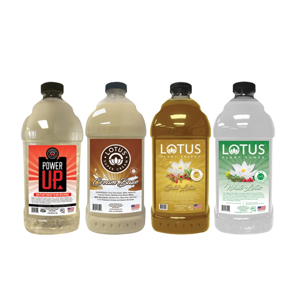 Lotus White, Lotus Gold, Crème Base, PowerUp. Comes with 4 Lotus 1oz pumps.