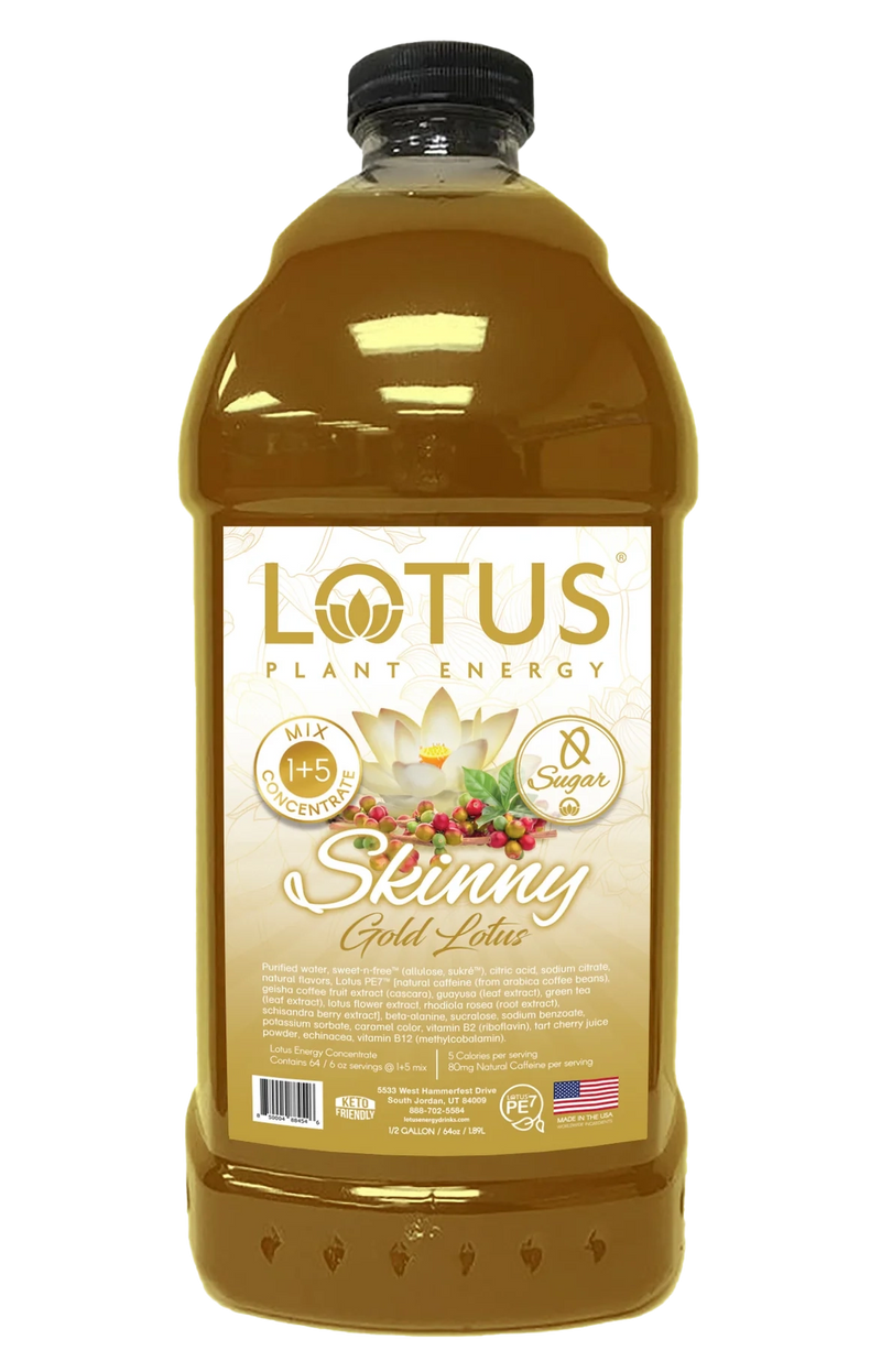 Skinny Gold Lotus is the gold standard for plant-based energy drinks, featuring gold geisha coffee fruit (cascara). This liquid gold has the great taste of Lotus and features a proprietary blend of earth's 7 most powerful plants (Lotus PP7). Naturally crated to awaken the mind, lift the spirit and nourish the body from the inside out with the natural power of plants.