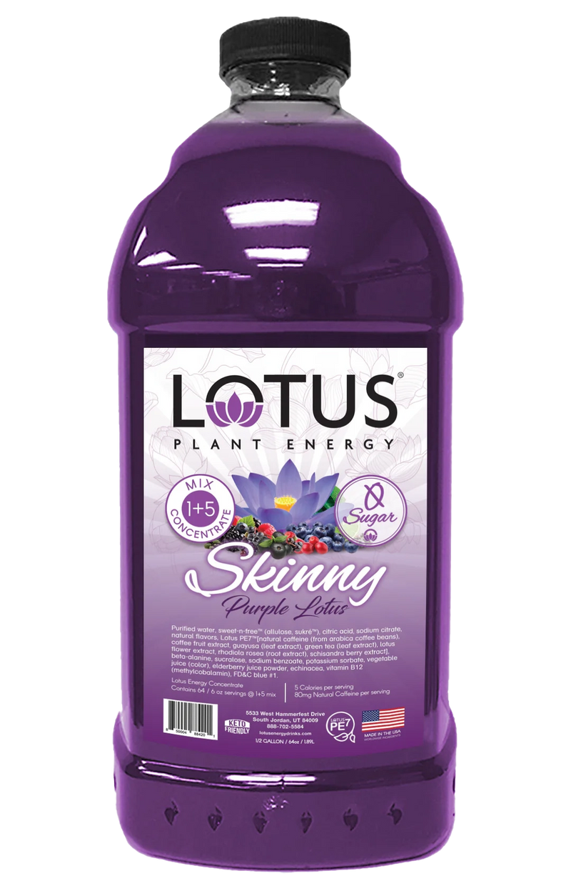 Skinny Purple Lotus adds a new flavor dimension with the addition of black raspberry and elderberry superfruits with the same great taste and function. Each (1oz pump) creates a 6oz serving, equal to the strength of an 8.4oz energy drink can! Skinny Purple Lotus feature's Coffee Fruit (Cascara) with nature's elite organic “Adaptogenic” botanicals, superfruits, amino acids, B-vitamins, natural caffeine, natural flavors and sweeteners.